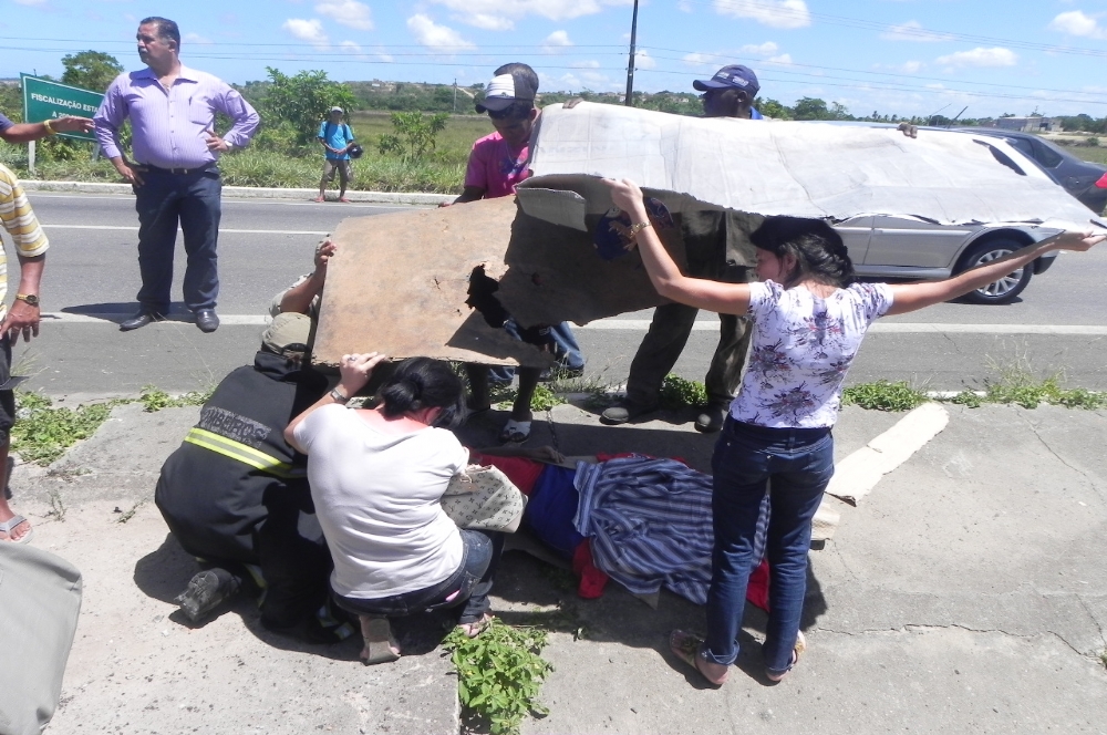 Motoristas que passavam pelo local pararam e colocaram papelões para proteger as vítimas do sol forte.