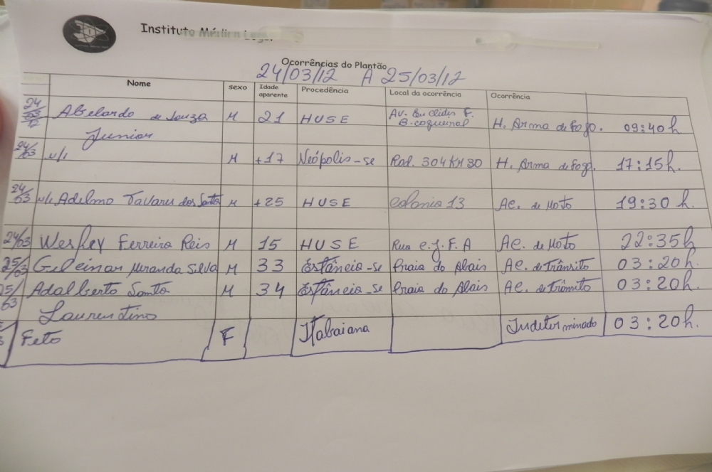 | Boletim do IML dando conta de que o adolescente foi vítima de homicídio |